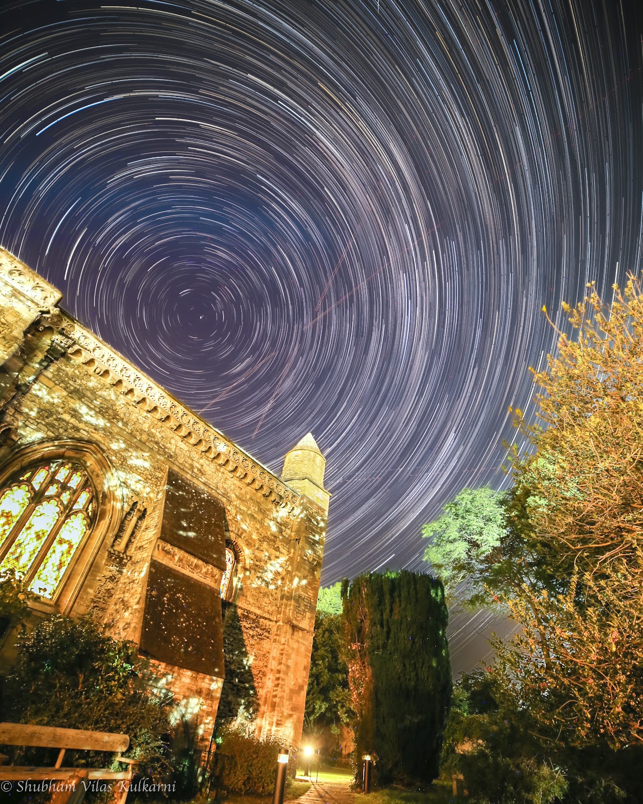 Polar startrails above the St. Edmund Hall library.